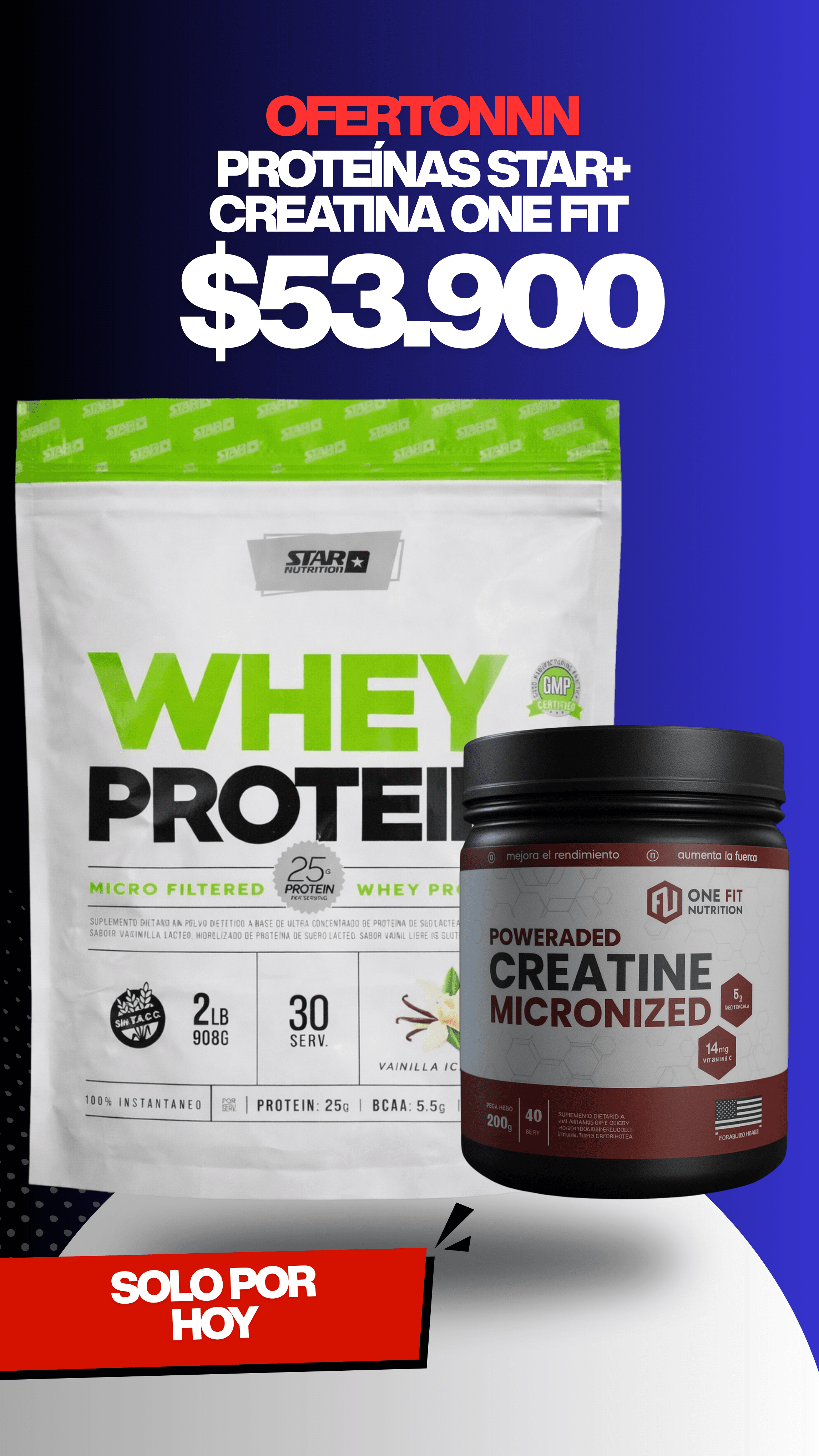 proteína star DOYPACK 2lb + CREATINA one fit 200g 100% pura