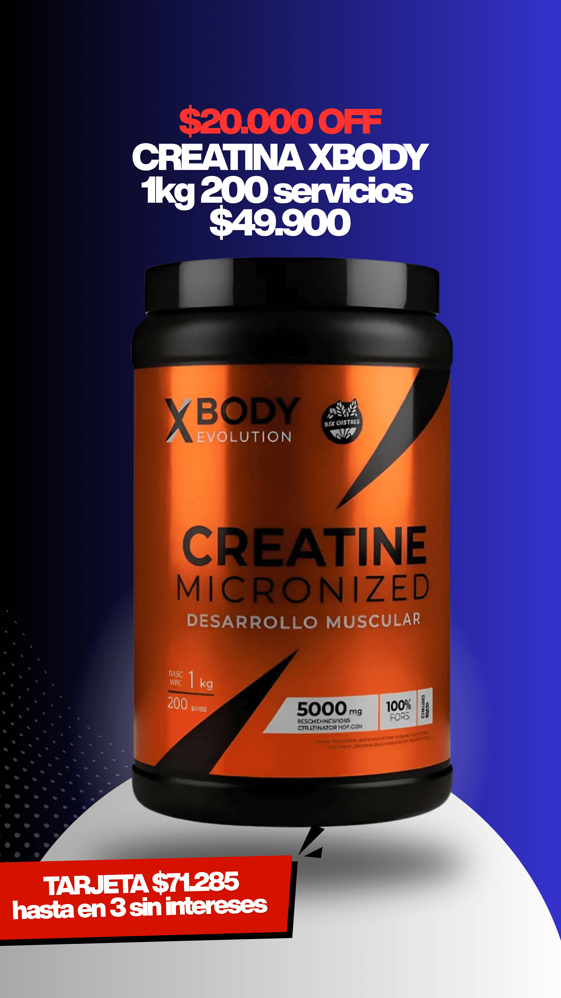 CREATINA 100% pura 1kg para 200 días, con $20.000 de descuento