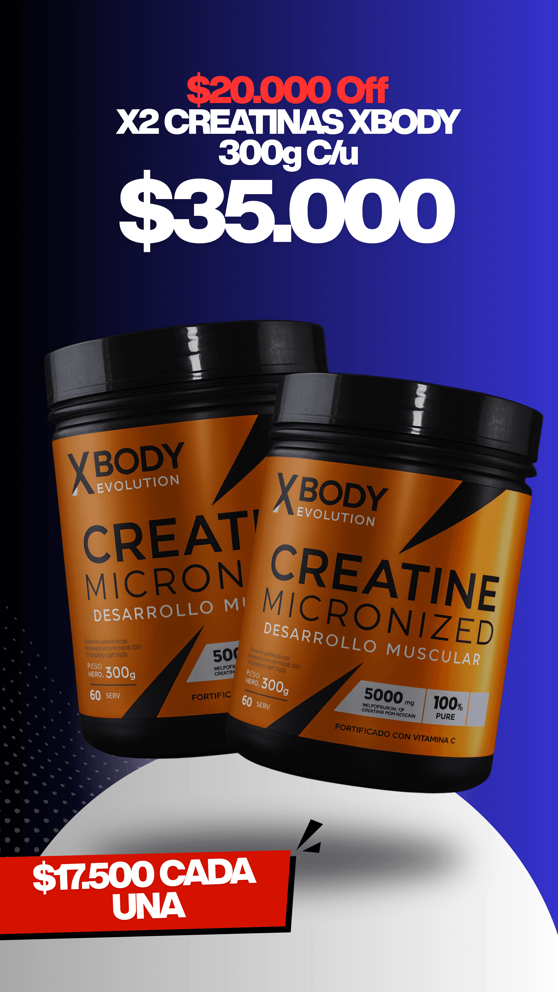 60 días de CREATINA cada una, para compartir con un amigo o pareja